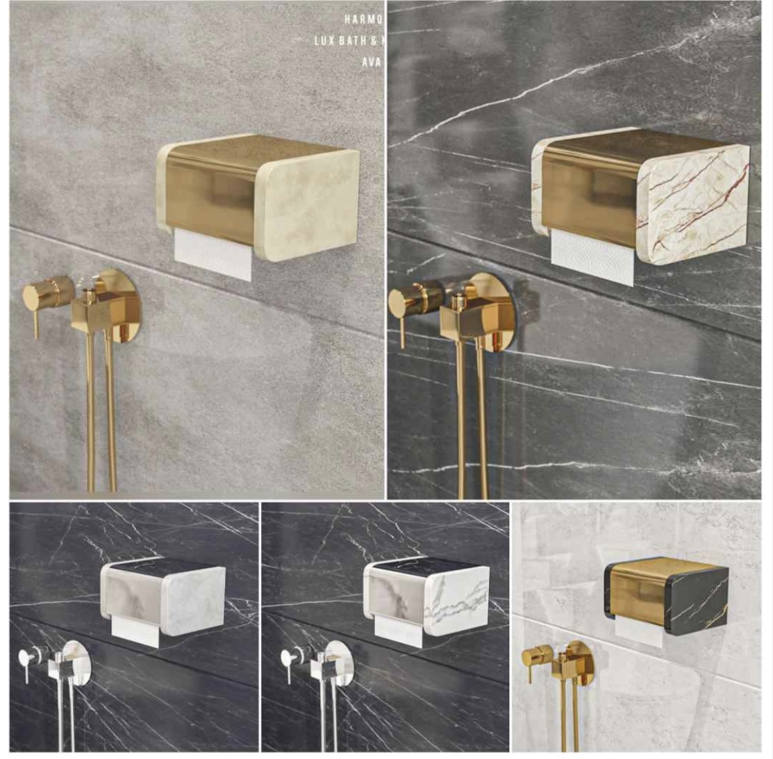 ست 6 پارچه مدل روشا -ست سرویس بهداشتی -طرح سنگ کروم